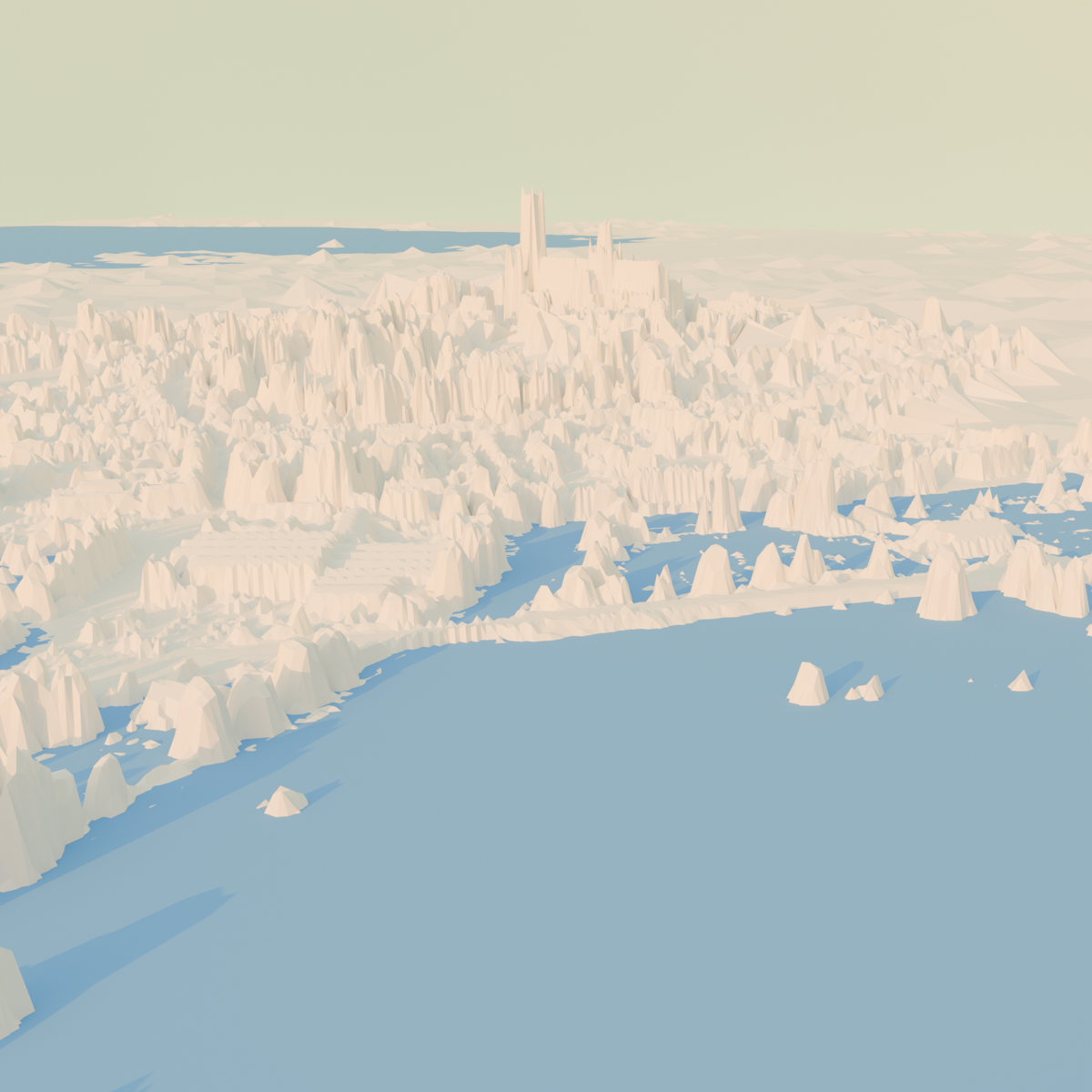 - Exaggerate the terrain for an artistic representation of the Isle jutting out